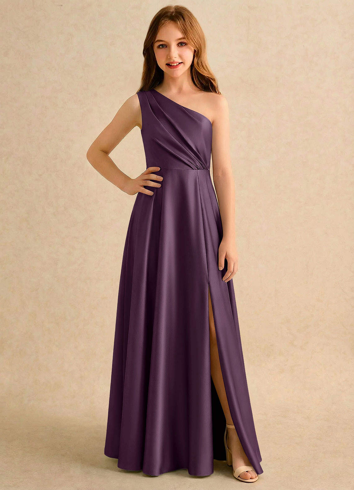 Abito A-Line in Raso Elasticizzato Monospalla Prugna