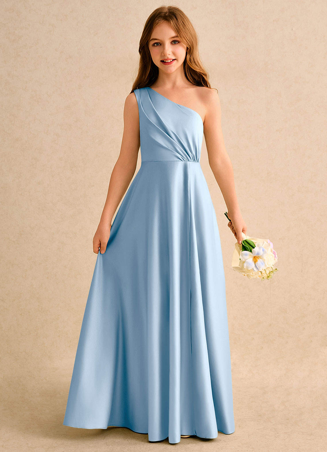 Abito A-Line in Raso Opaco Monospalla Azzurro Polvere