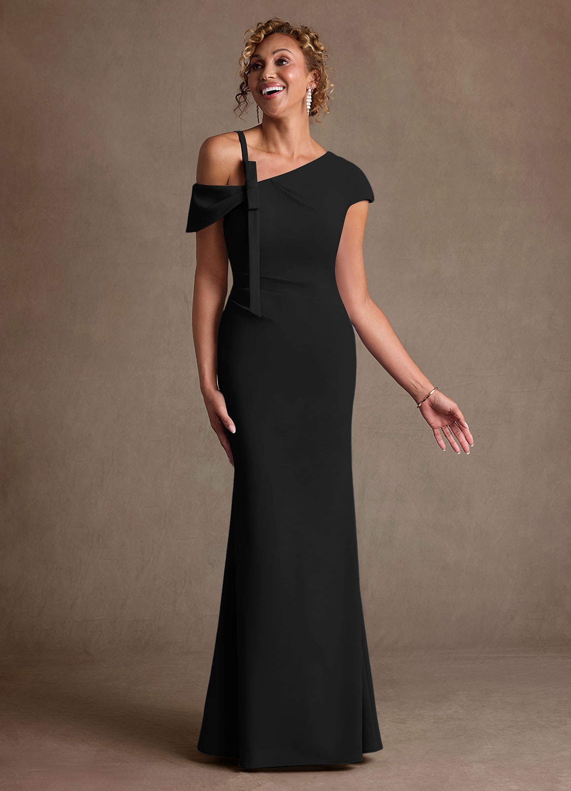 Abito Tubino in Crepe Elasticizzato a Spalla Scoperta Nero