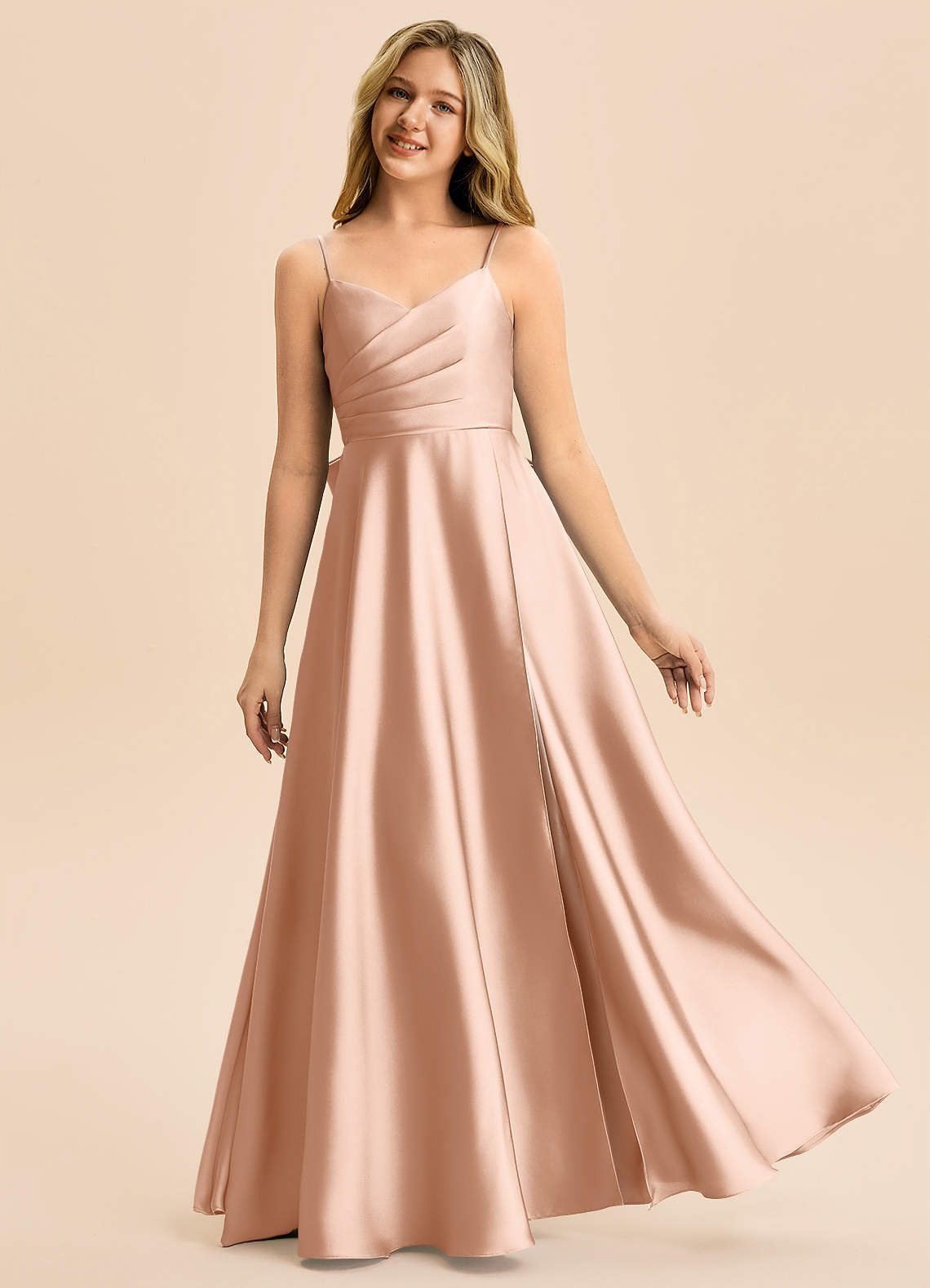 Abito A-Line in Raso Elasticizzato Plissettato Oro Rosa