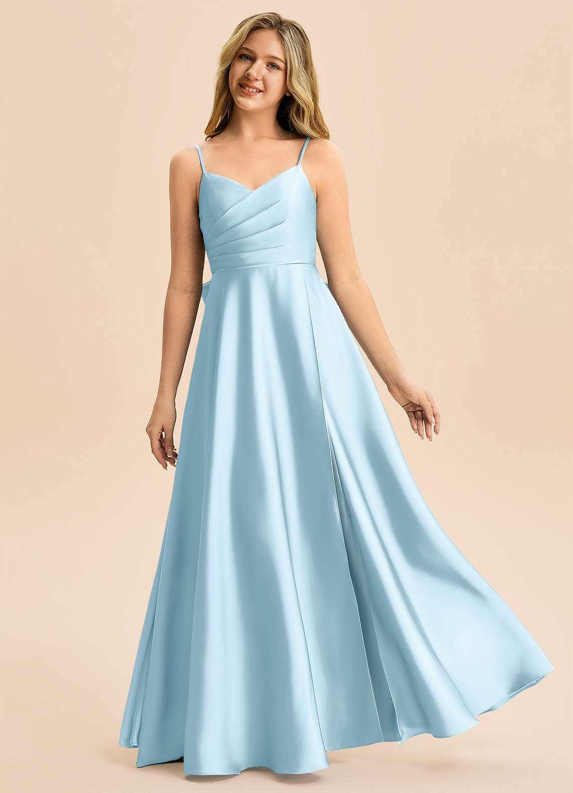 Abito A-Line in Raso Elasticizzato Plissettato Azzurro