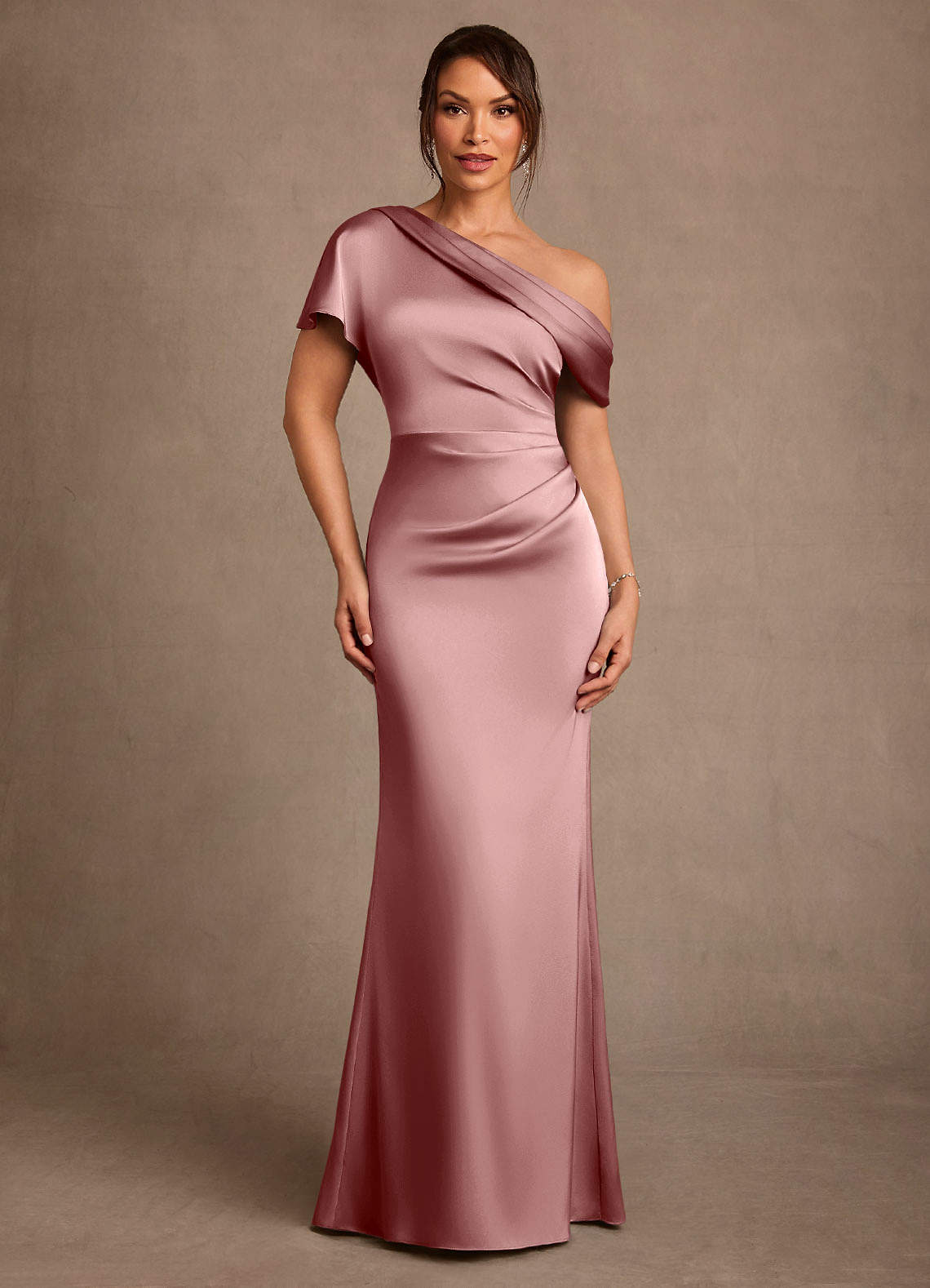 Abito Tubino in Raso Elasticizzato Monospalla Rosa Polverosa