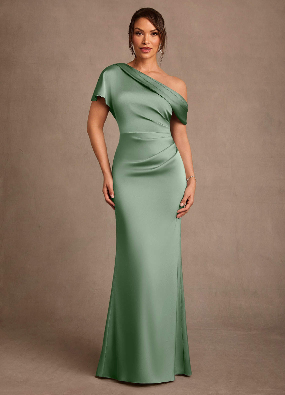 Abito Tubino in Raso Elasticizzato Monospalla Matcha