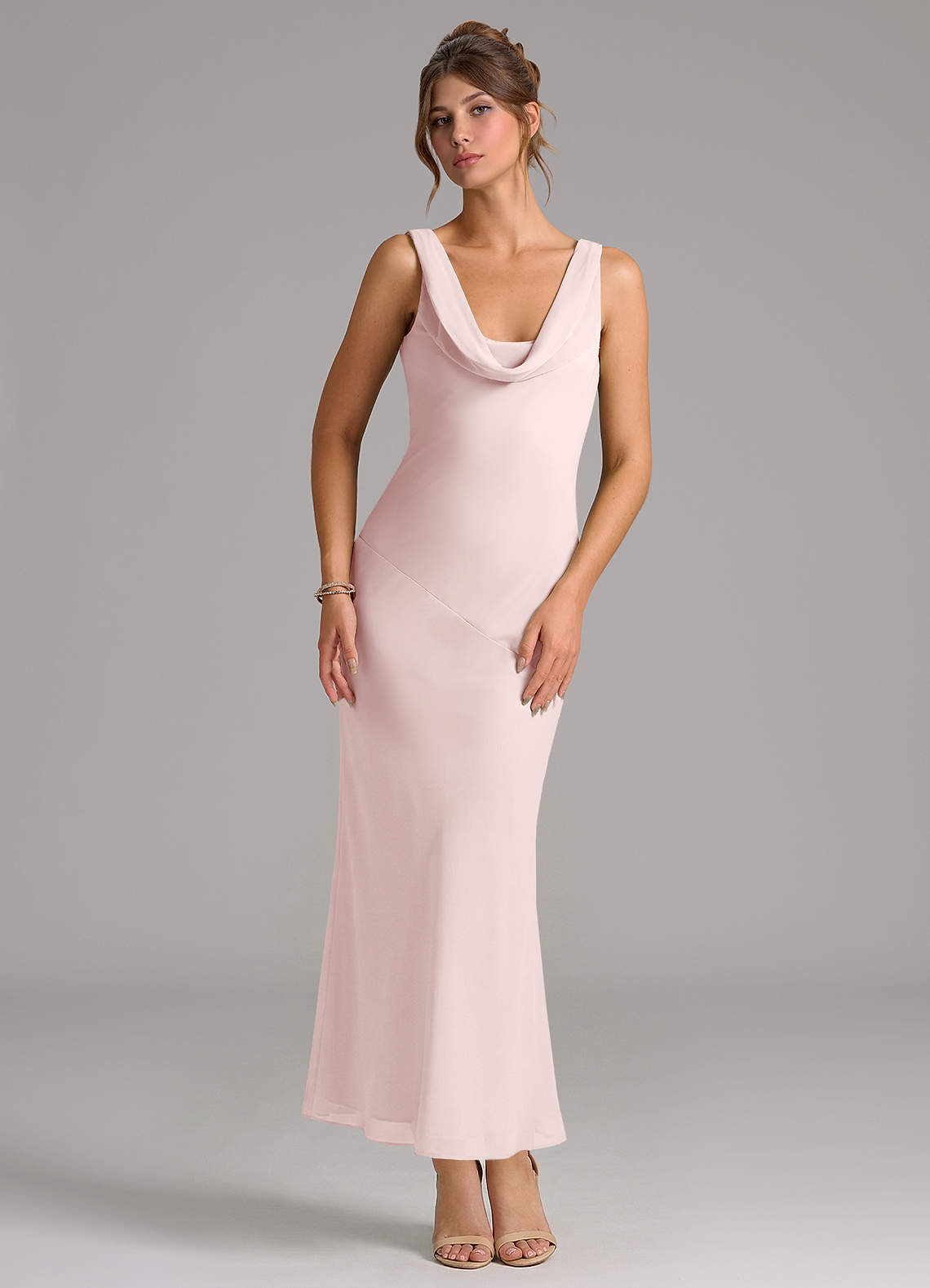 Abito Sirena in Chiffon Plissettato Rosa Rossore