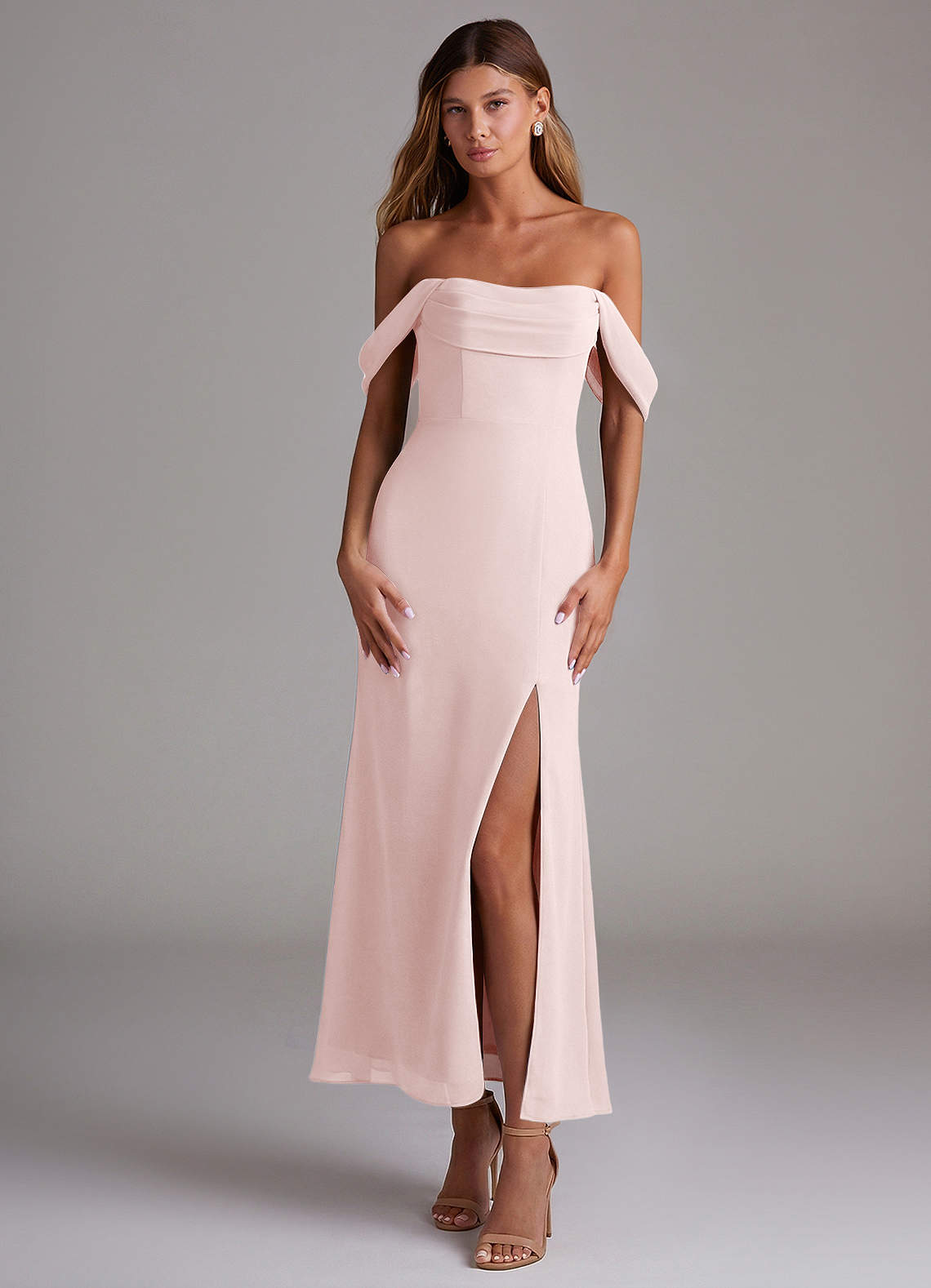 Abito Convertibile Sirena in Chiffon a Spalla Scoperta Rosa Rossore