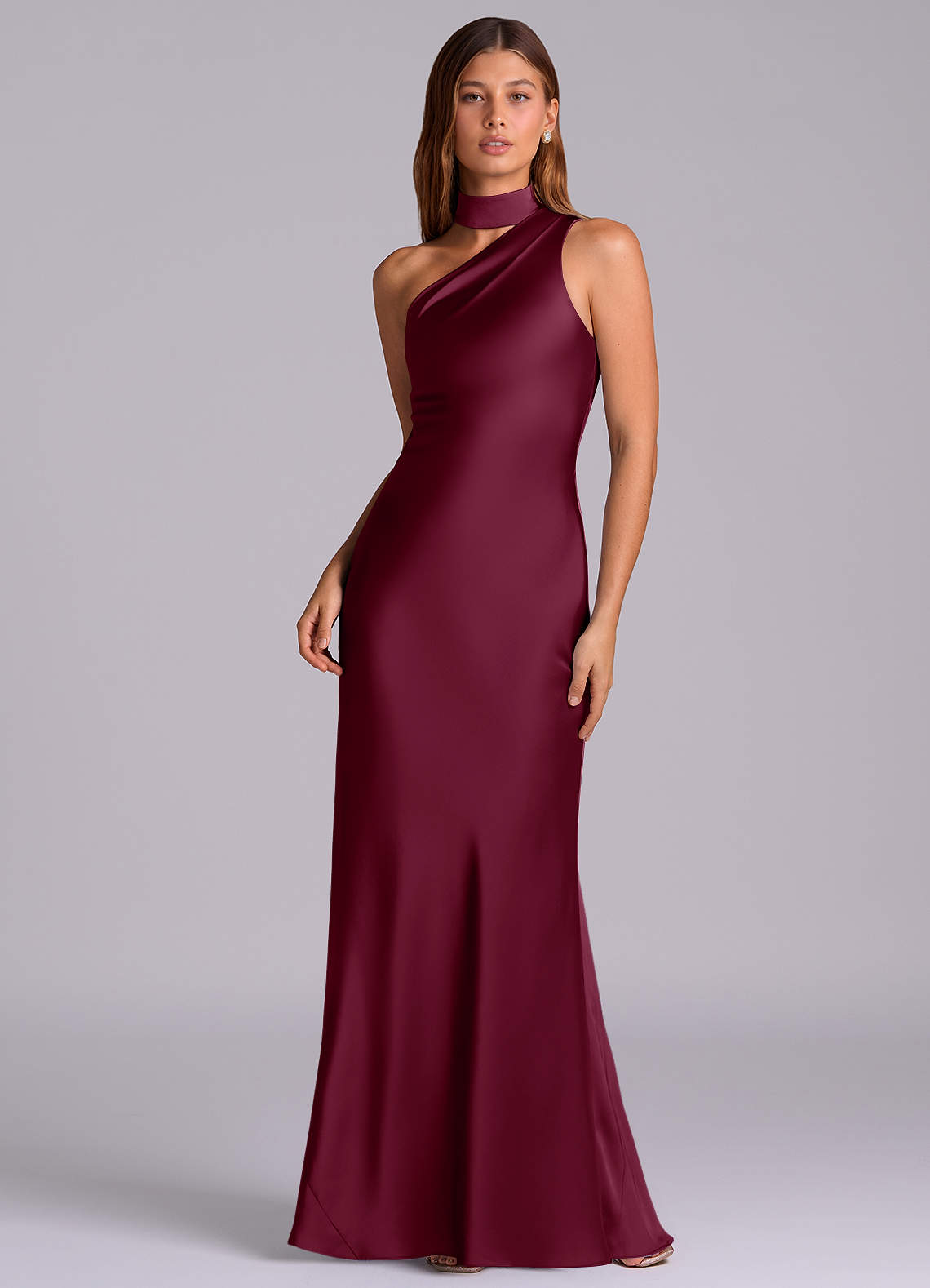 Abito Sirena in Raso Elasticizzato Monospalla Gelso