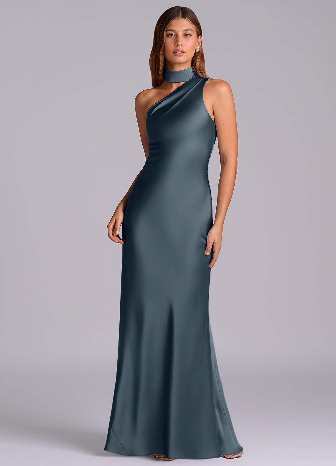 Abito Sirena in Raso Elasticizzato Monospalla Crepuscolo