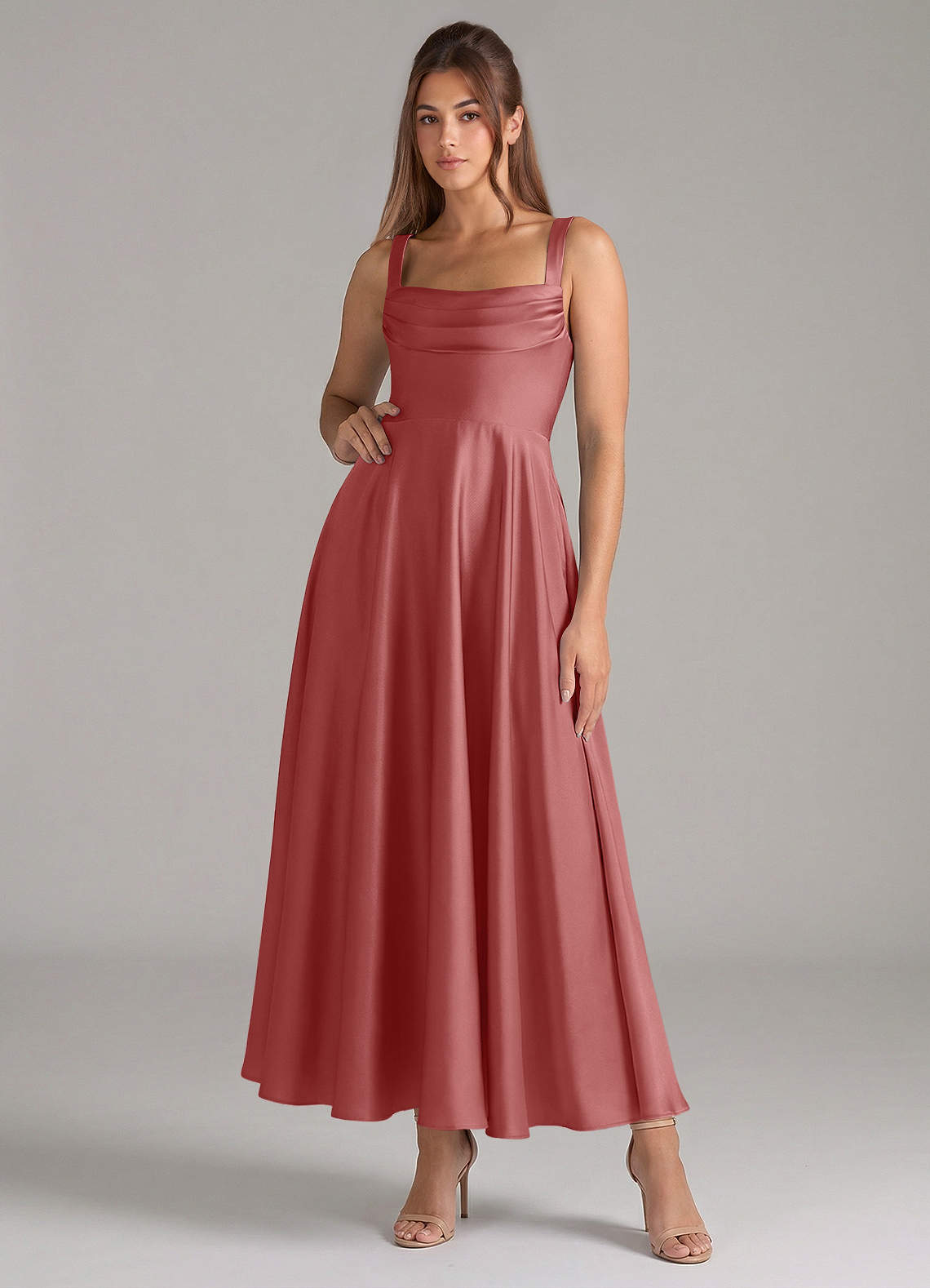 Abito A-Line in Raso Elasticizzato Plissettato Rosa Antica