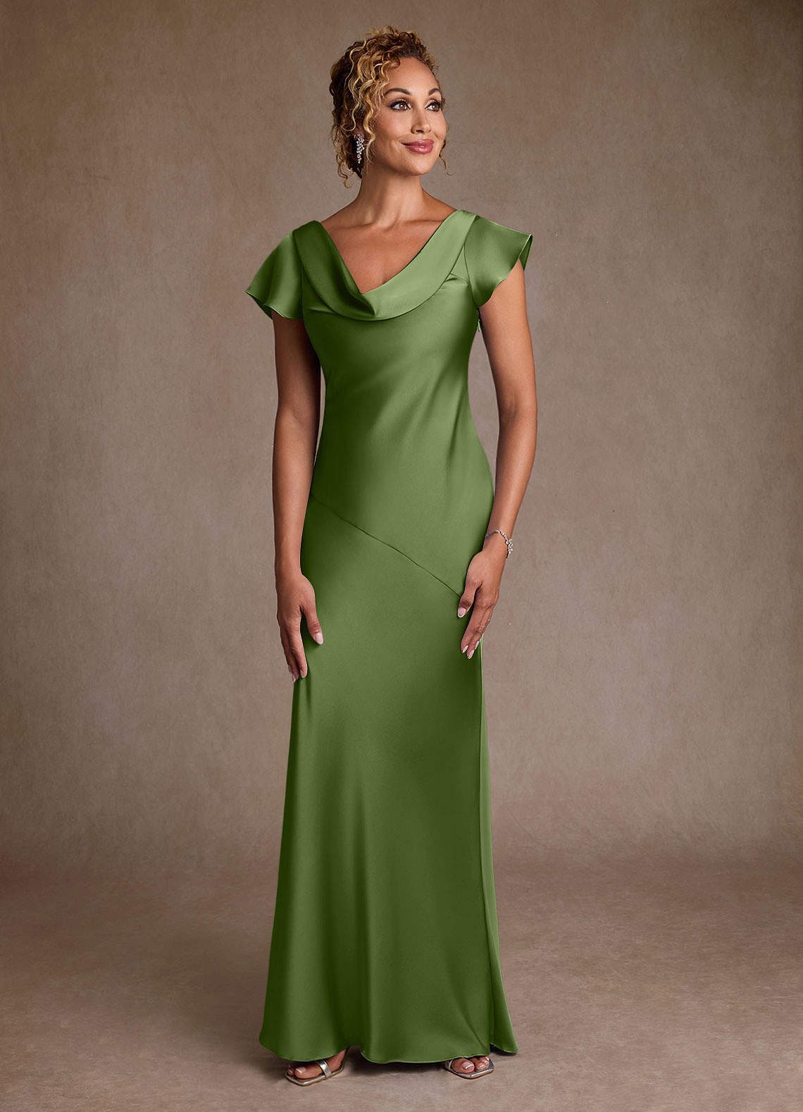 Abito Sirena in Raso Elasticizzato Plissettato Ginepro