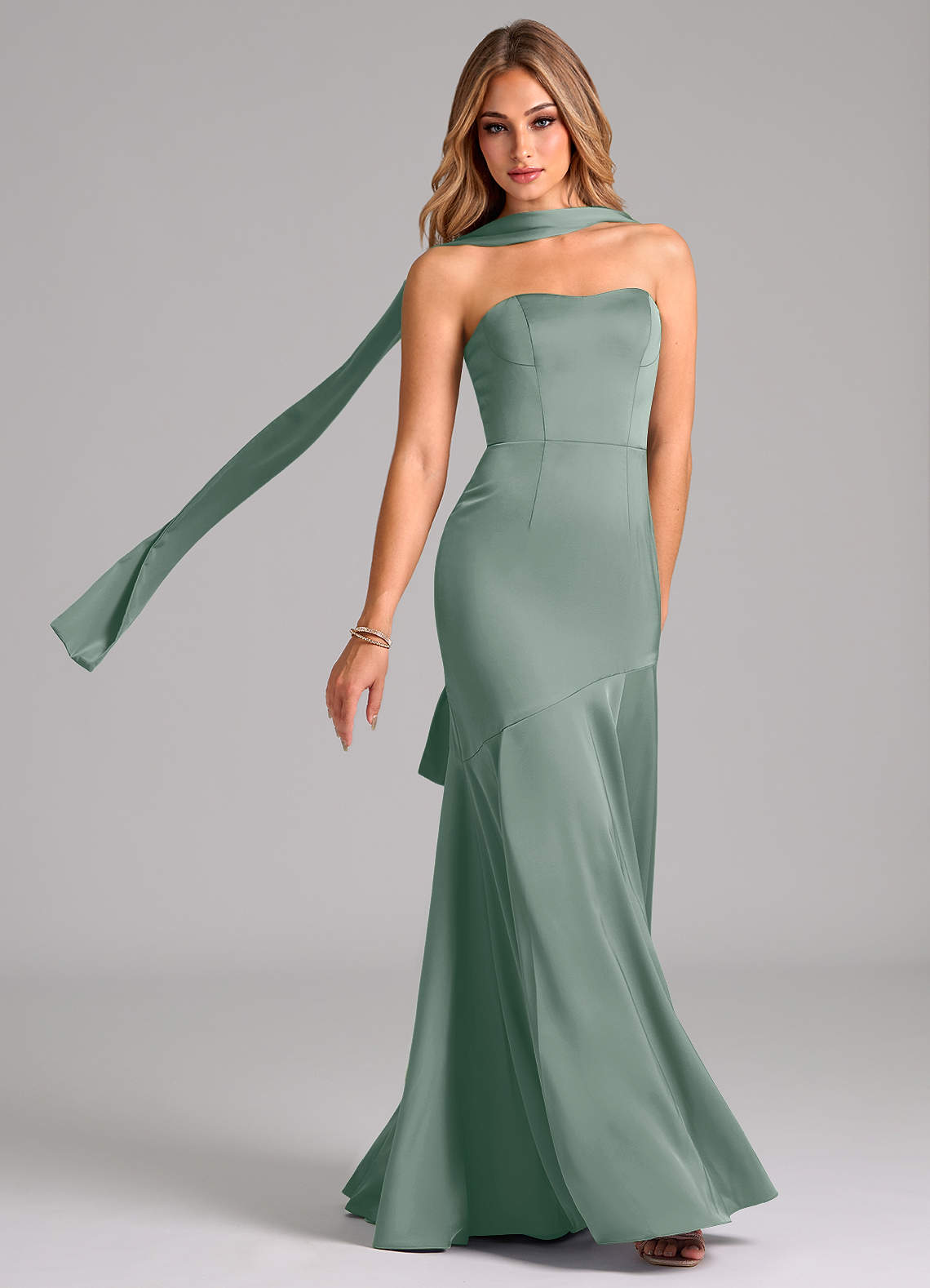 Abito Convertibile Sirena in Raso Elasticizzato Senza Cinturino Salvia Argentata