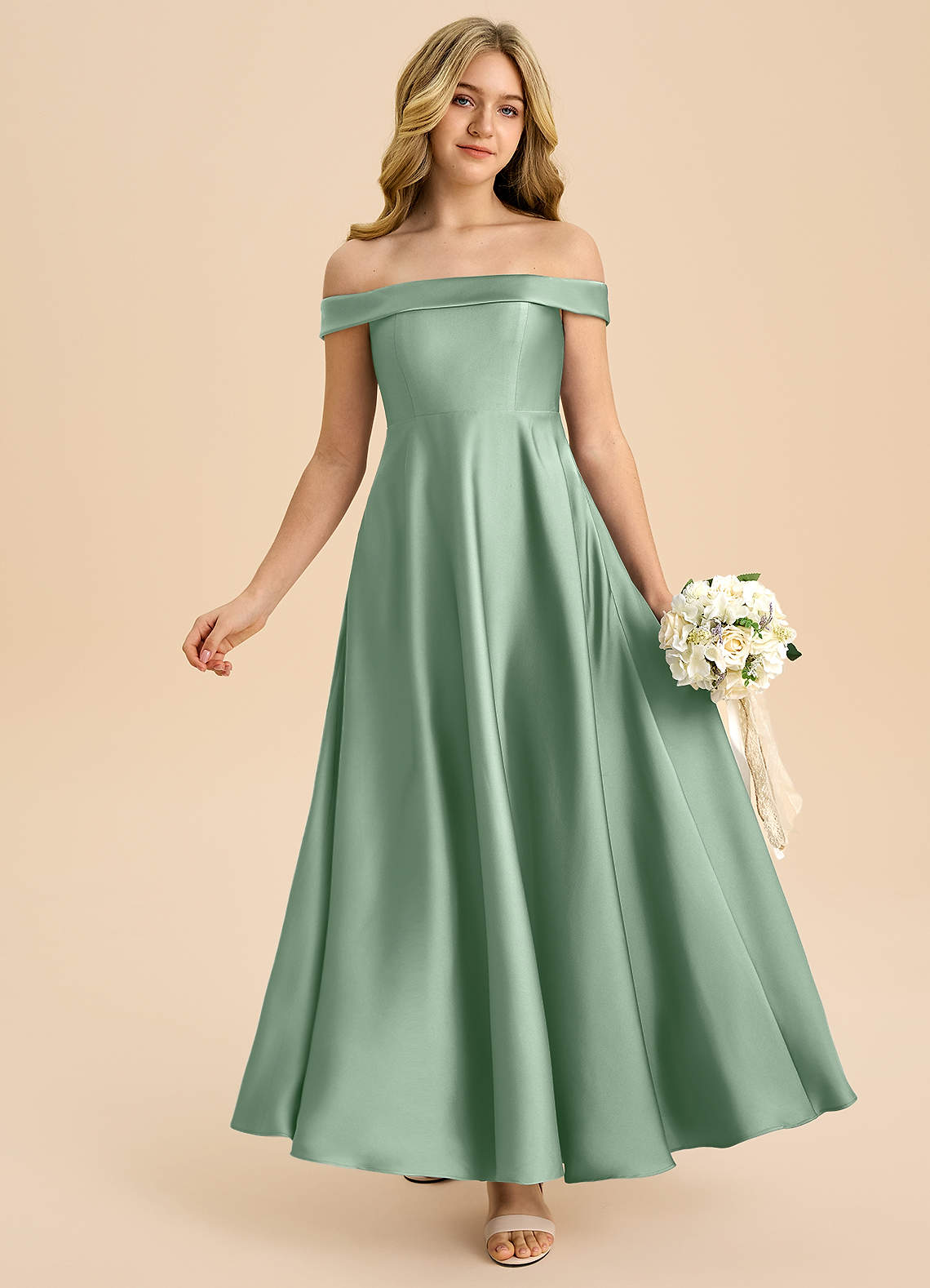 Abito A-Line in Raso Elasticizzato a Spalla Scoperta Agave