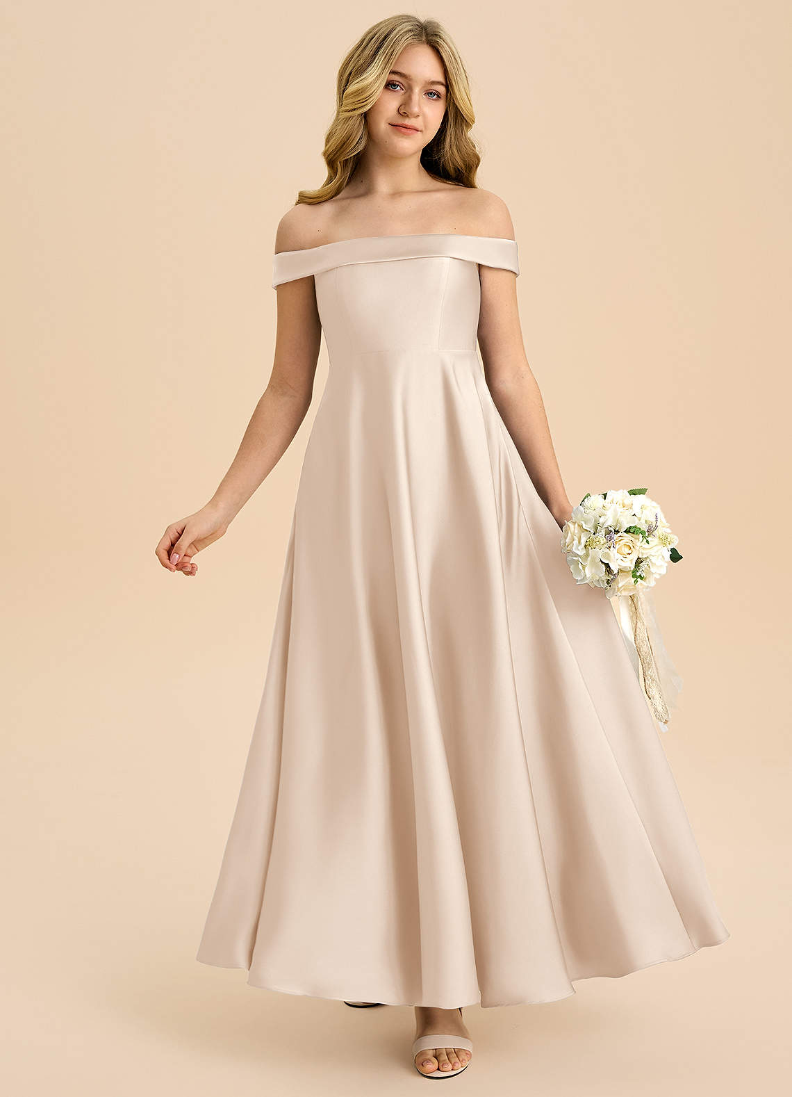 Abito A-Line in Raso Elasticizzato a Spalla Scoperta Alabastro Bianco