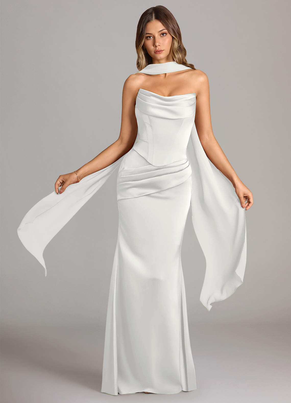 Abito Convertibile Sirena in Raso Elasticizzato Senza Cinturino Bianco