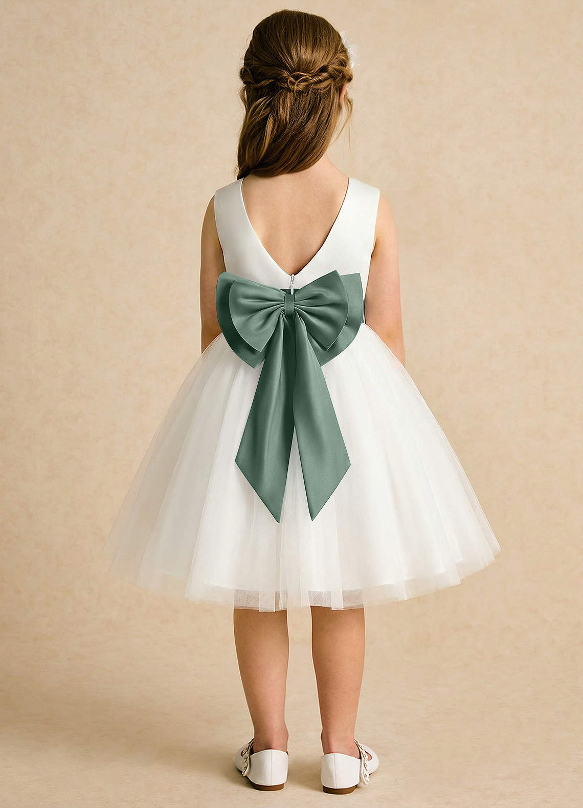 Abito A-Line in Tulle Plissettato Avorio Eucalipto