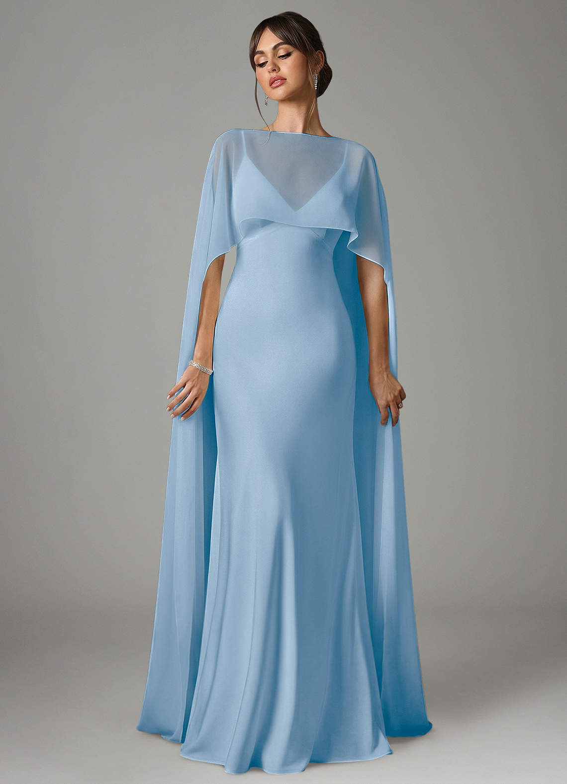 Abito A-Line in Raso Elasticizzato Azzurro Polvere