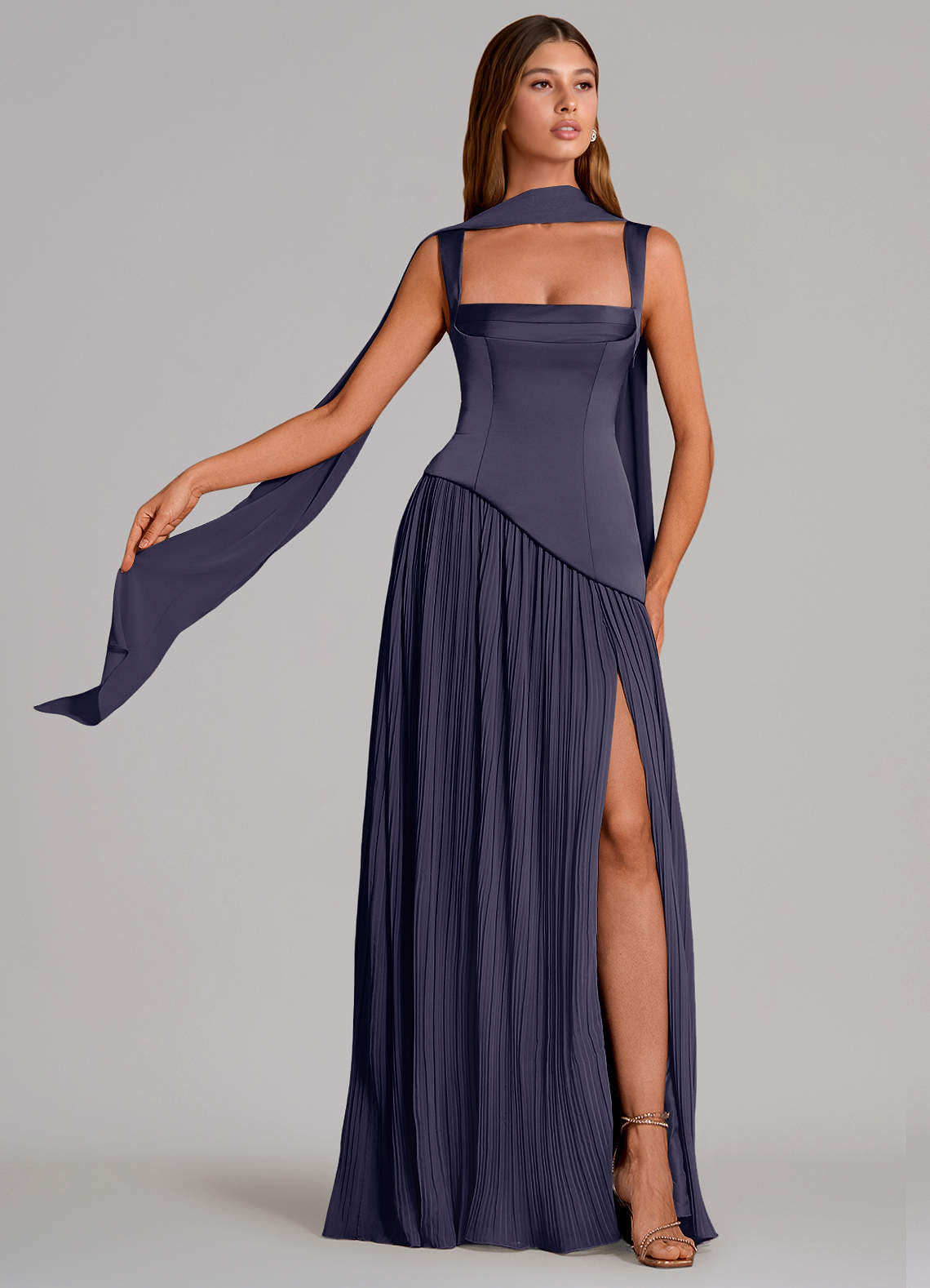 Abito A-Line in Raso Elasticizzato Plissettato Stormy