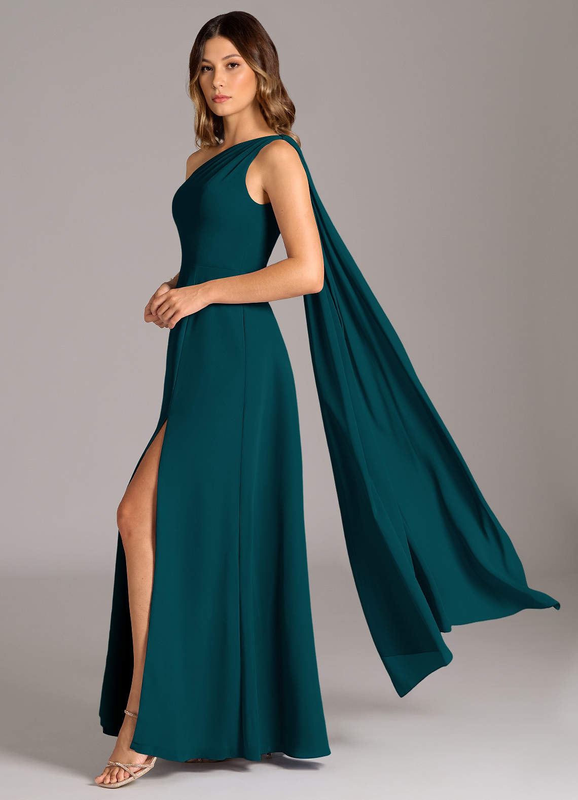 Abito A-Line in Chiffon Monospalla Pino