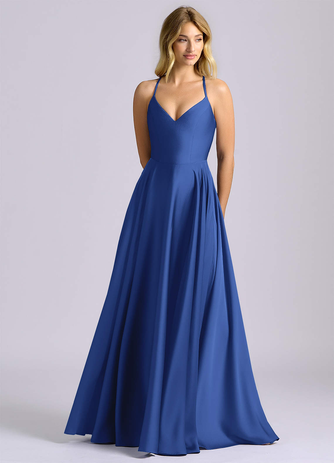 Abito A-Line in Raso Elasticizzato Blu Reale