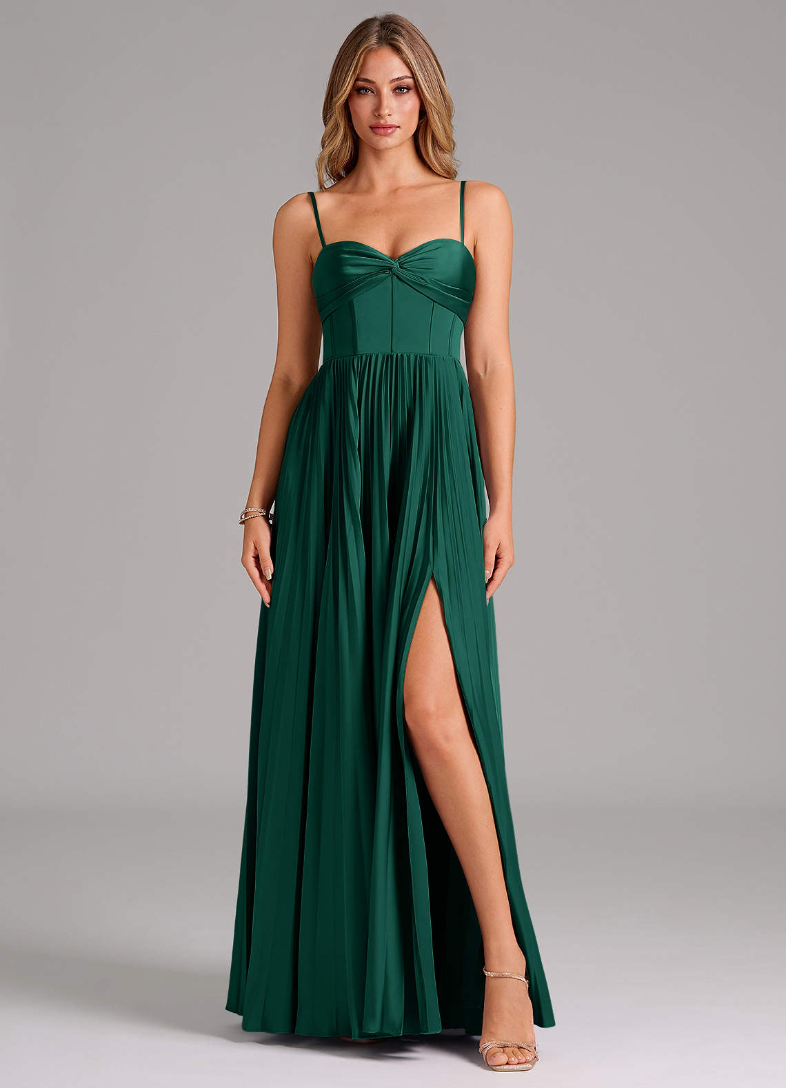 Abito A-Line in Raso Elasticizzato Scollo a Cuore Smeraldo