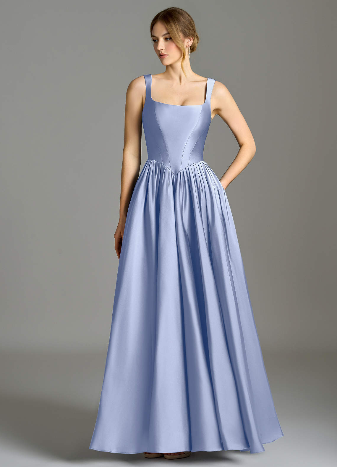 Abito A-Line in Raso Elasticizzato Plissettato Ghiaccio