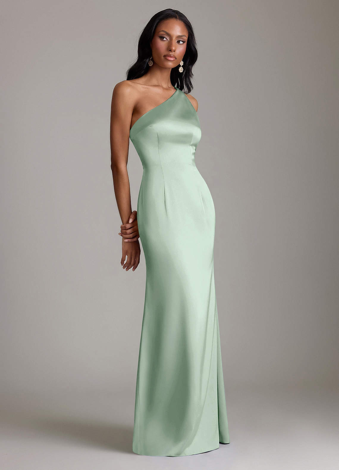 Abito Sirena in Raso Elasticizzato Monospalla Agave