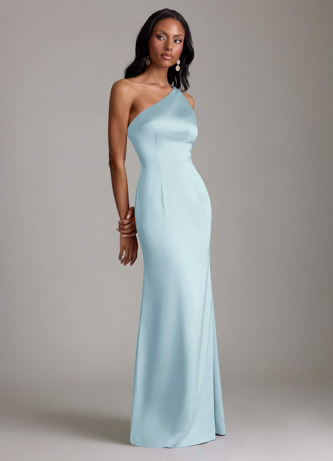 Abito Sirena in Raso Elasticizzato Monospalla Nuvola Blu