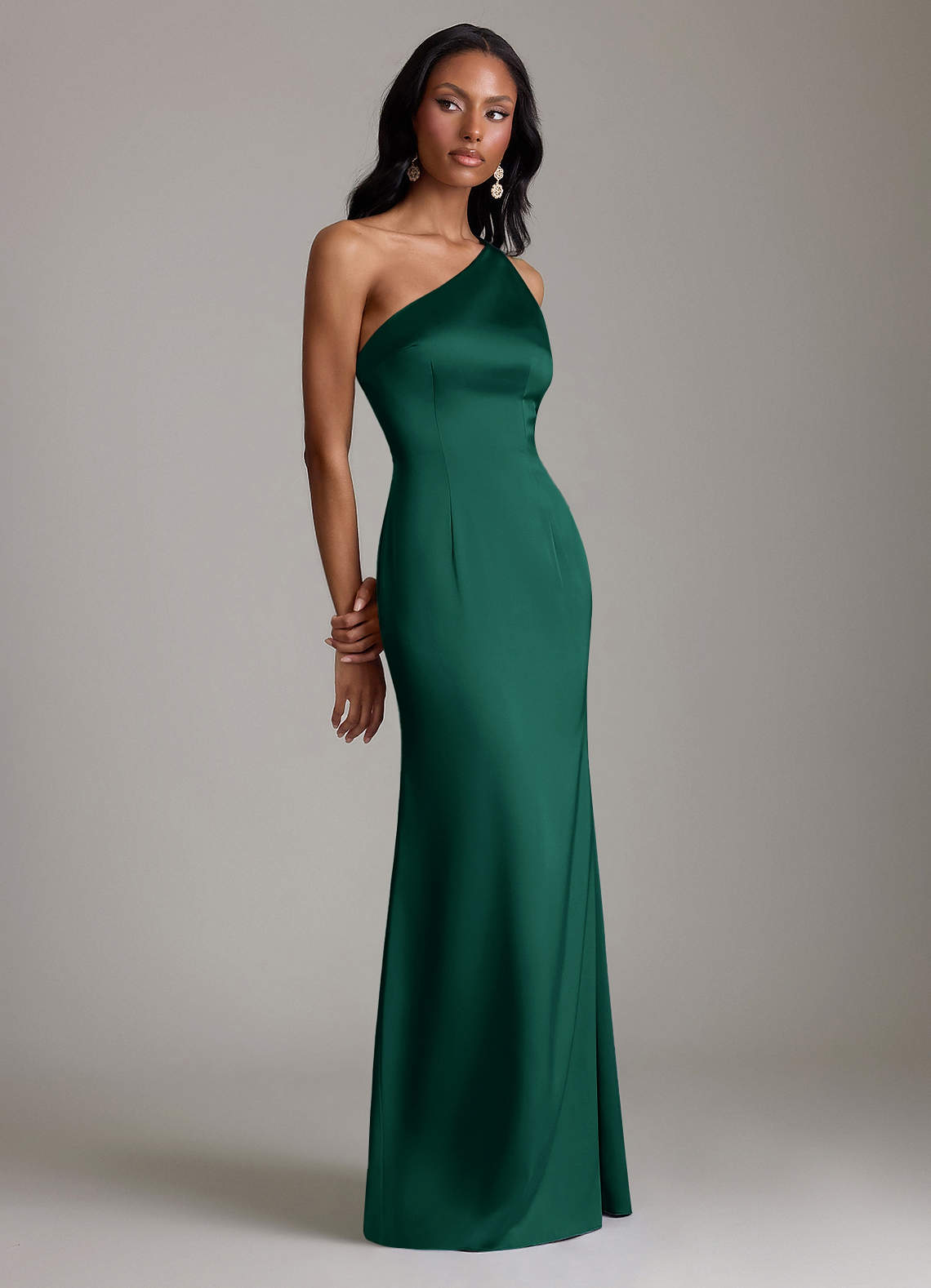 Abito Sirena in Raso Elasticizzato Monospalla Smeraldo