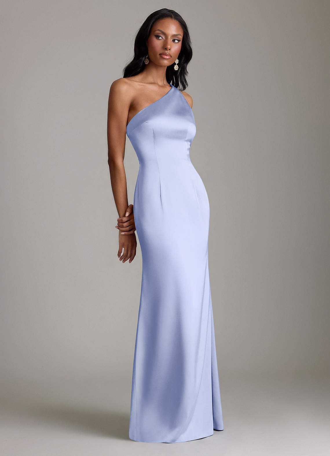 Abito Sirena in Raso Elasticizzato Monospalla Ghiaccio