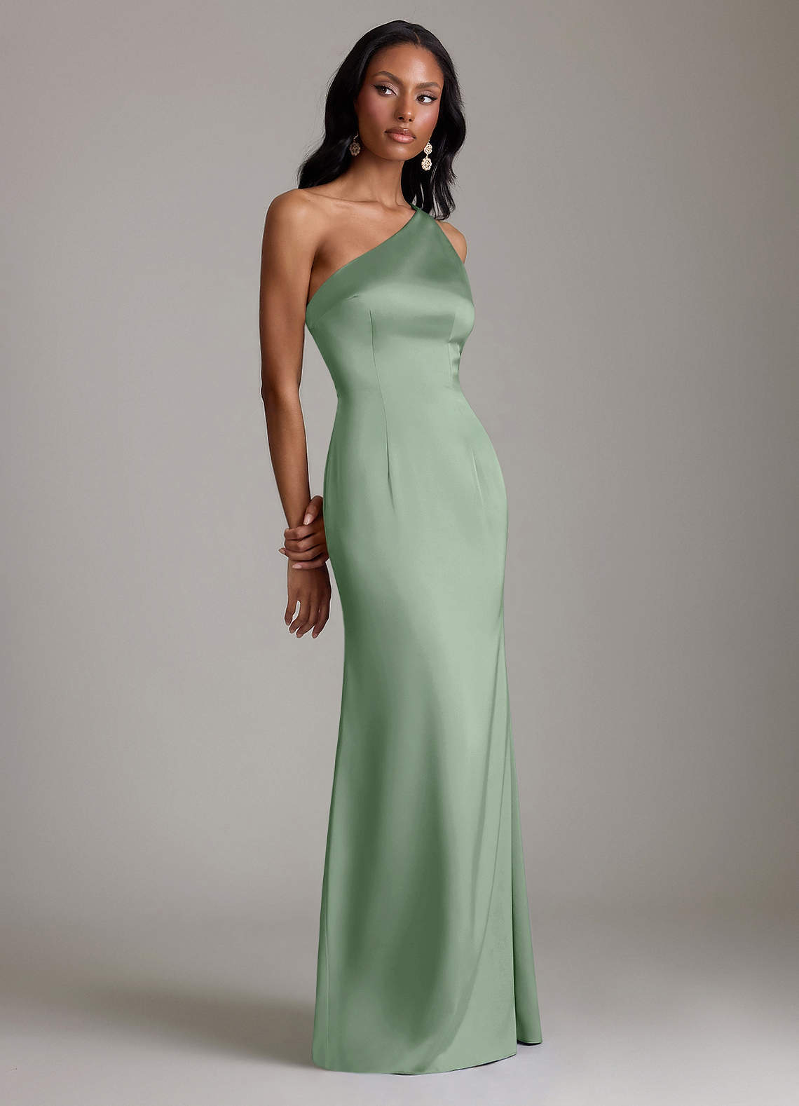 Abito Sirena in Raso Elasticizzato Monospalla Matcha