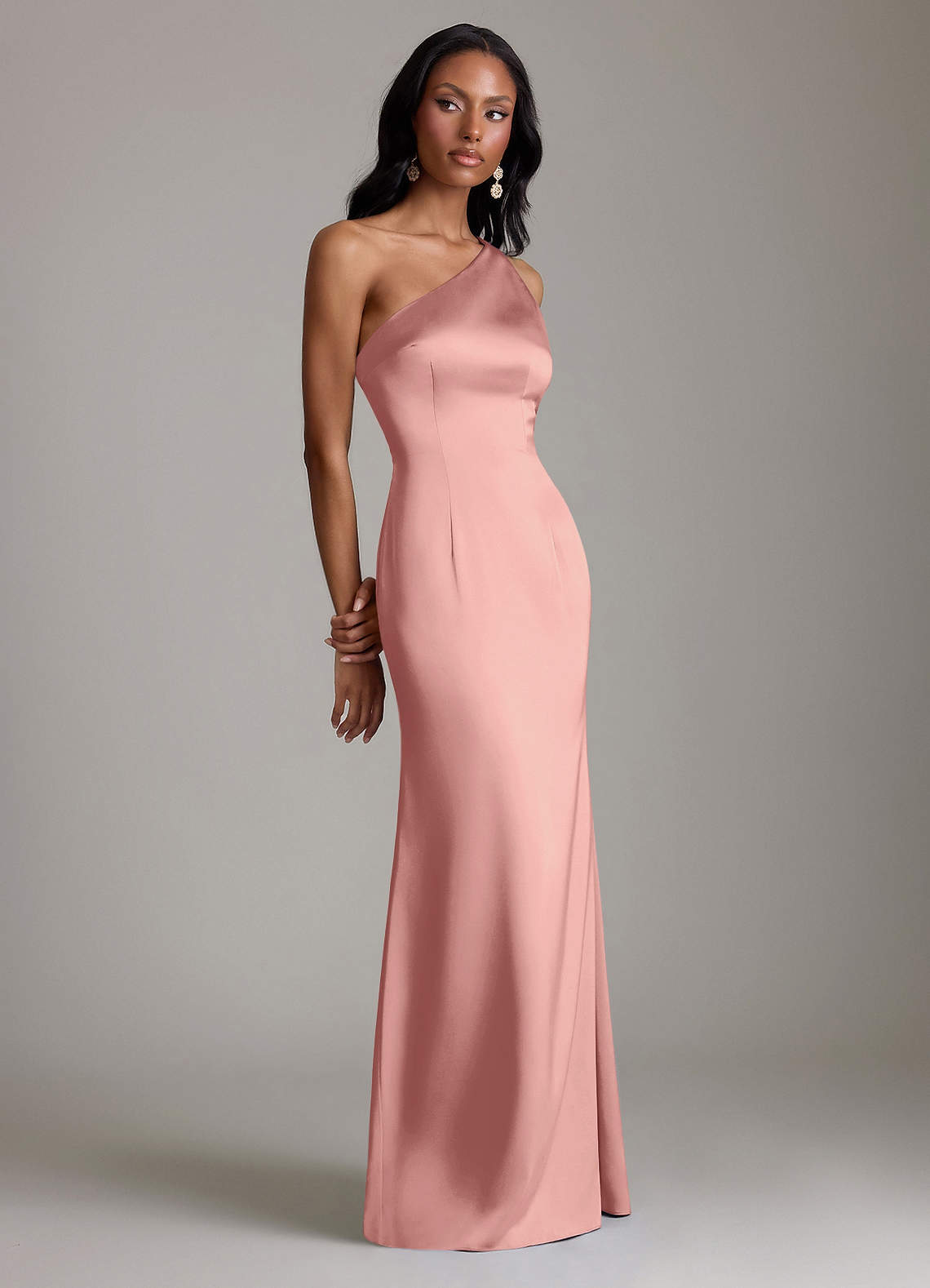 Abito Sirena in Raso Elasticizzato Monospalla Rosetta