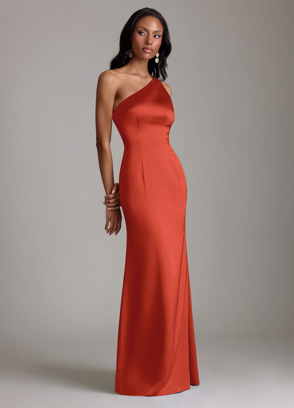 Abito Sirena in Raso Elasticizzato Monospalla Ruggine
