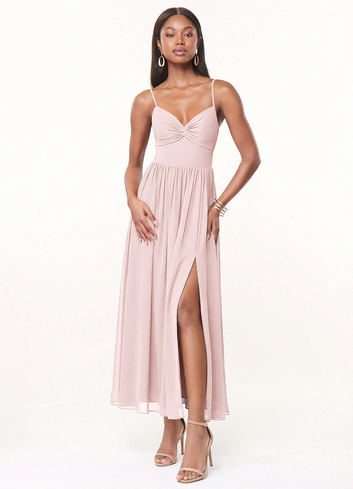 Abito A-Line in Chiffon Plissettato Rosa Rossore