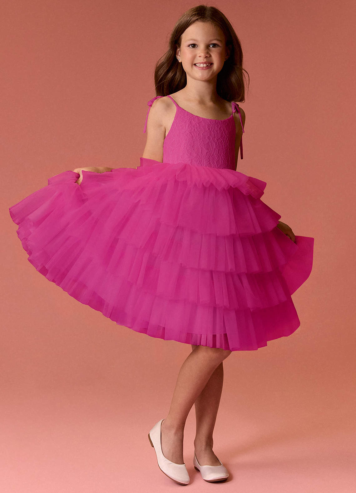 Abito A-Line in Tulle Cinturino Spaghetti Fucsia Fucsia