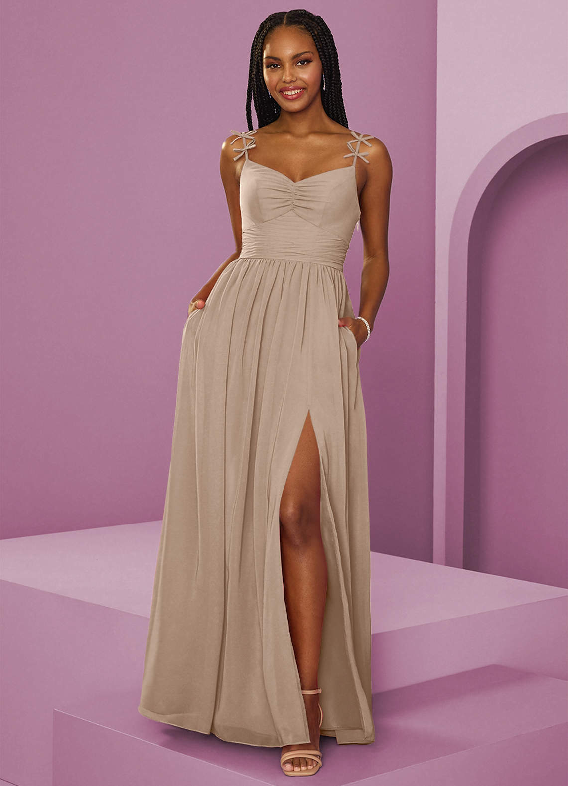 Abito A-Line in Chiffon Plissettato Taupe Taupe