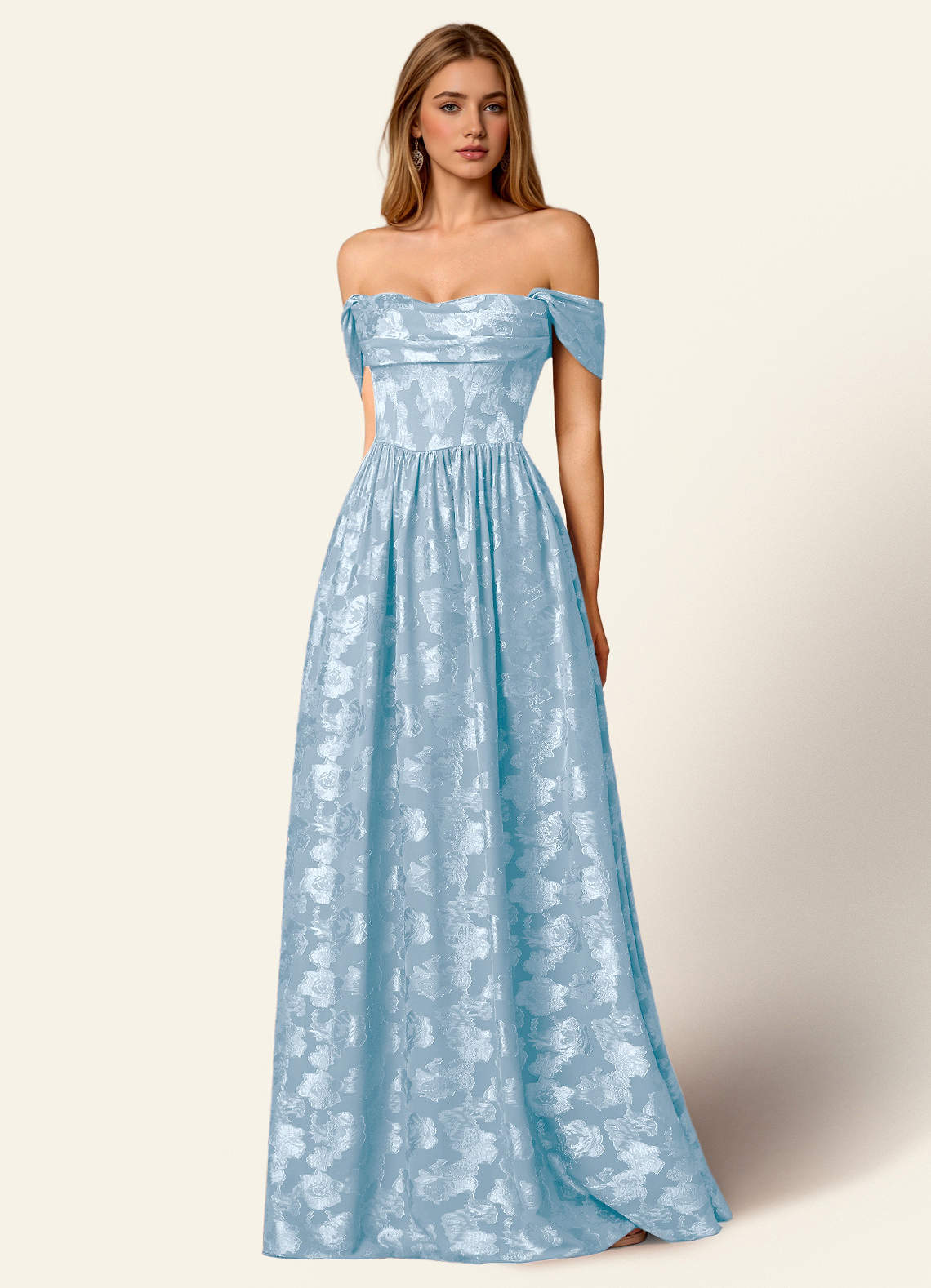 Briar Blu Polvere Abito da ballo lungo plissettato