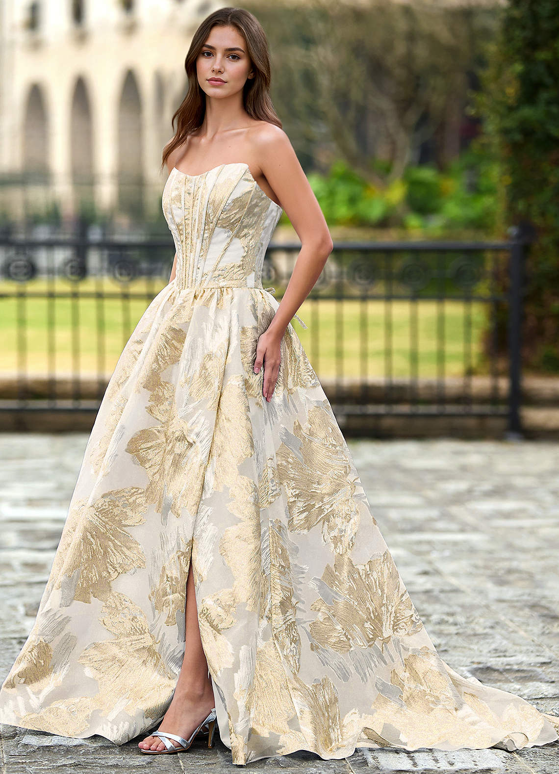 Thalia Champagne Abito da ballo a trapezio con lacci Enchanted Garden