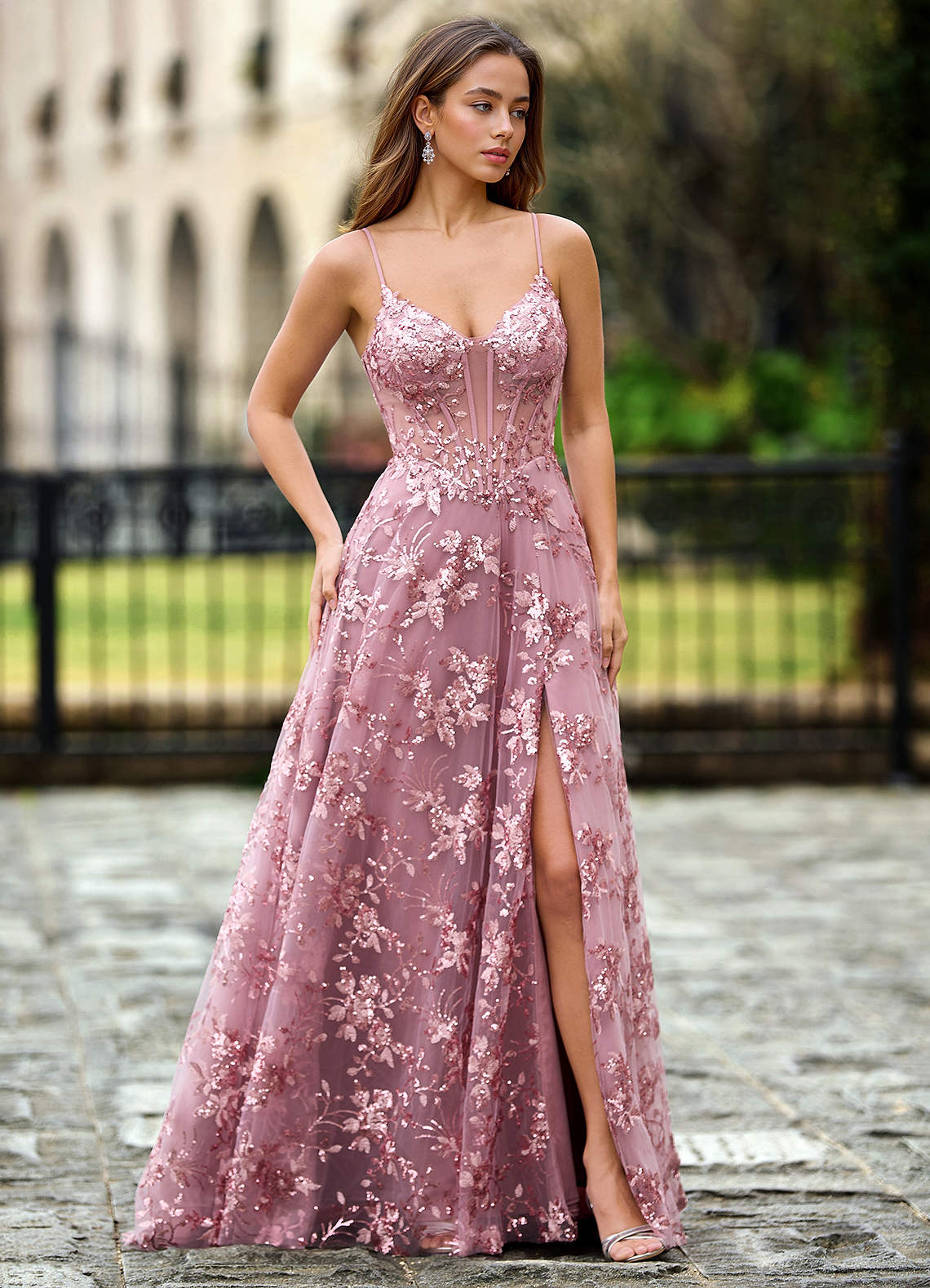 Willowener Rosa Abito da ballo in pizzo con paillettes