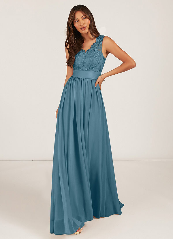 A라인 레이스 쉬폰 바닥 길이 드레스