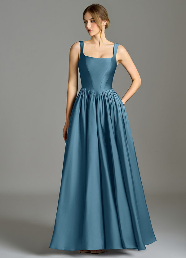 A라인 포켓이 있는 스트레치 새틴 플로어 길이 드레스