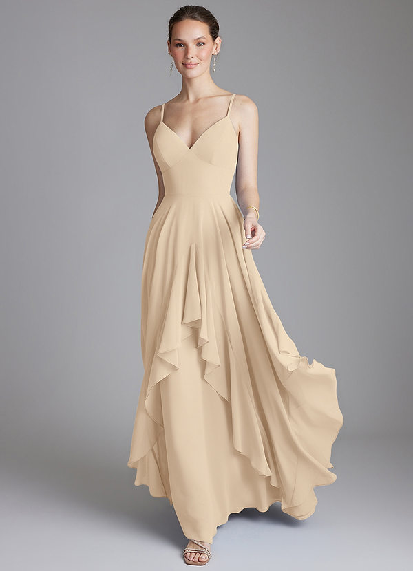 A라인 주름진 쉬폰 바닥 길이 드레스