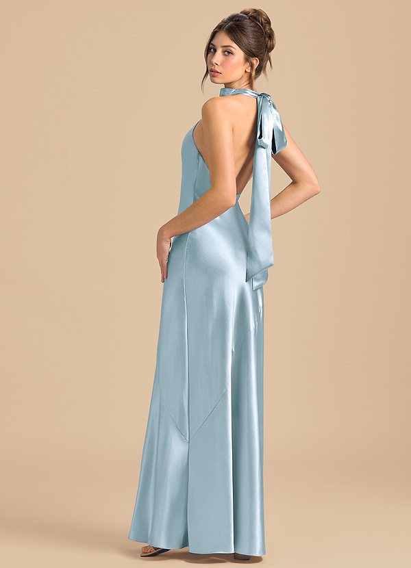 쉬스 하이넥 메탈릭 새틴 바닥 길이 드레스