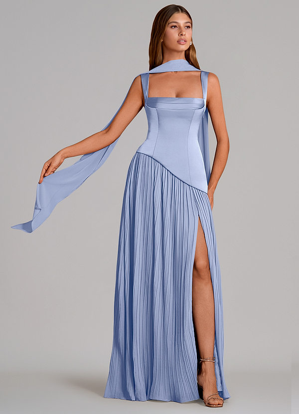 A라인 주름진 스트레치 새틴 바닥 길이 드레스