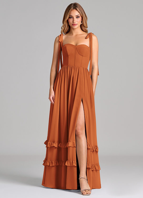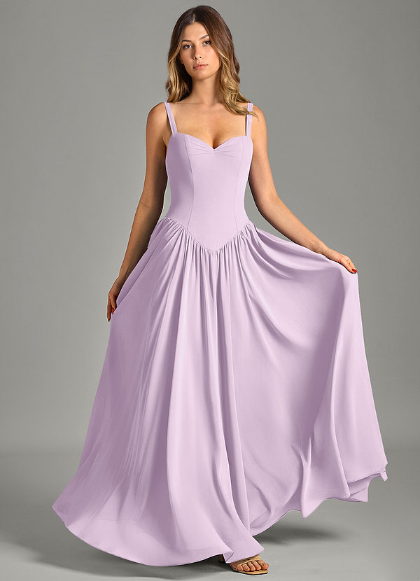A라인 코르셋 쉬폰 바닥 길이 드레스