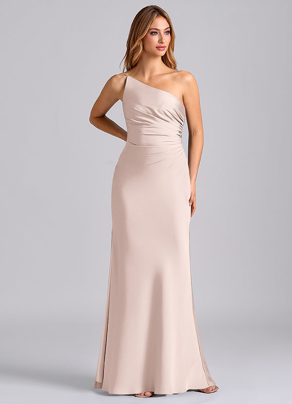 A라인 한쪽 어깨 스트레치 새틴 바닥 길이 드레스
