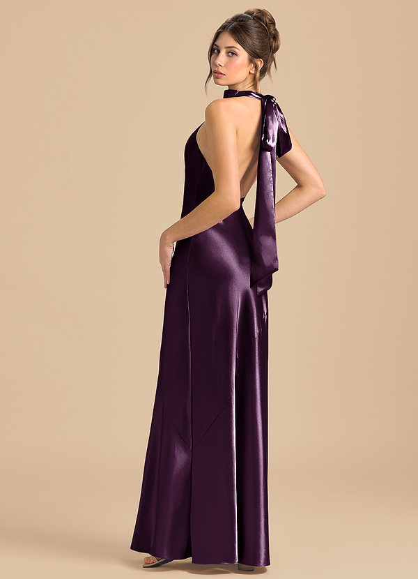 A라인 주름진 스트레치 새틴 바닥 길이 드레스