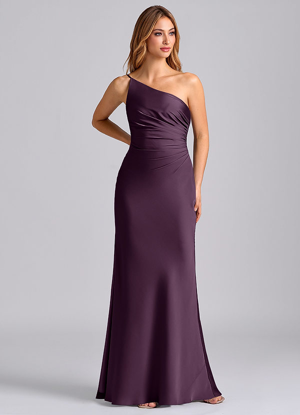 A라인 한쪽 어깨 스트레치 새틴 바닥 길이 드레스