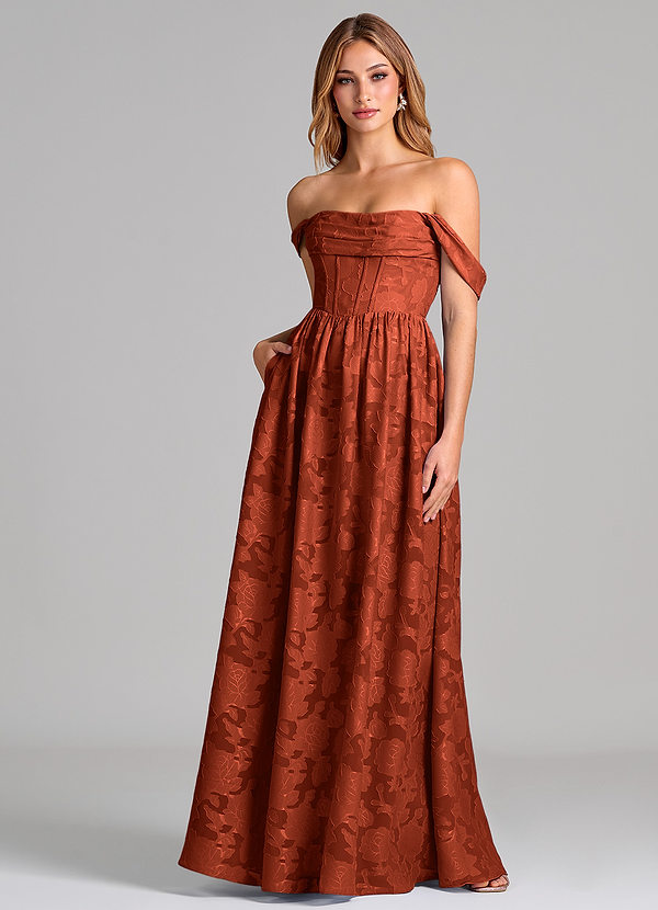 A라인 오프 더 숄더 스트레치 새틴 바닥 길이 드레스