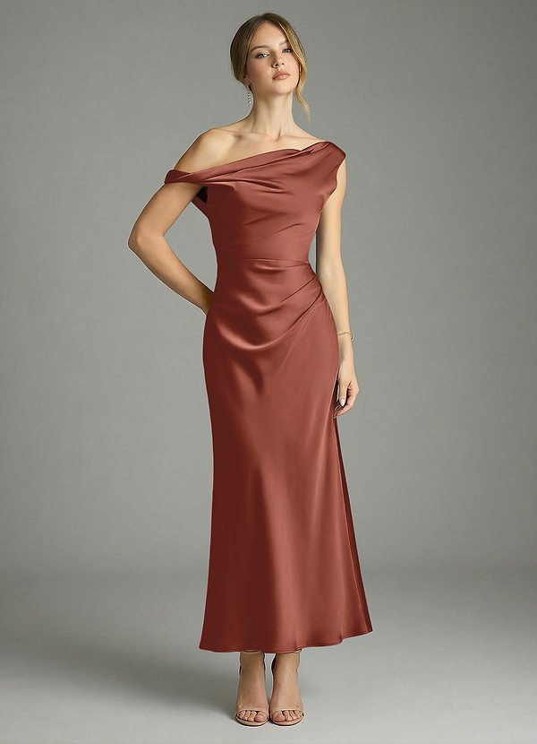 인어 오프 더 숄더 스트레치 새틴 발목 길이 드레스