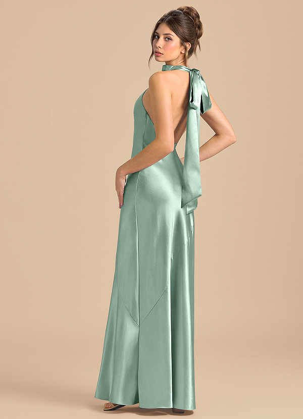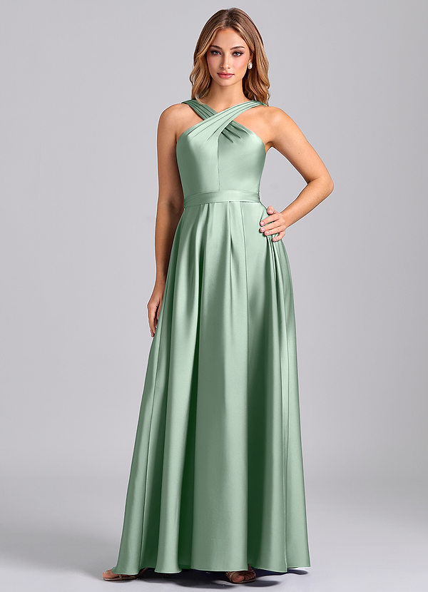 A라인 주름진 스트레치 새틴 바닥 길이 드레스