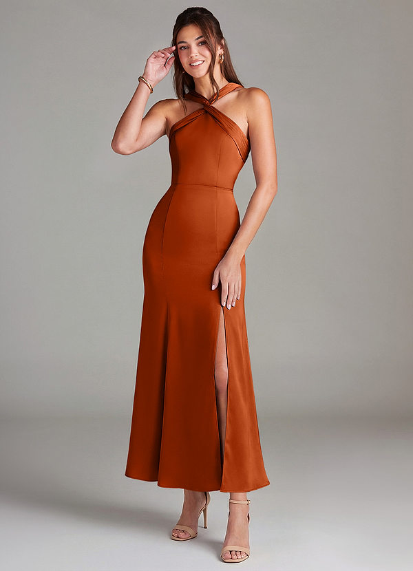 번트 오렌지 브라이드메이드 드레스